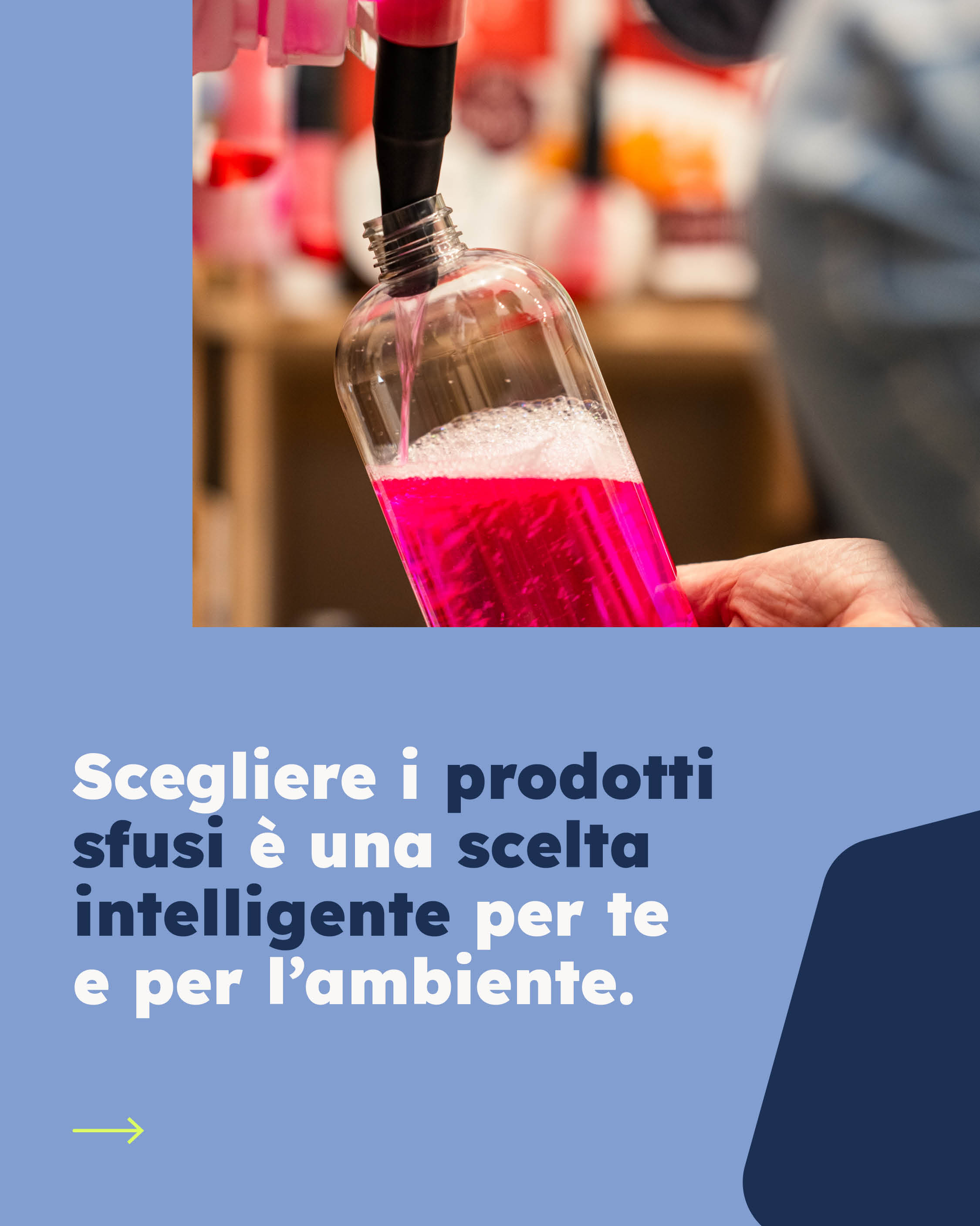 Il nostro cliente infatti potrà usare un contenitore di cui è già in possesso oppure acquistare un flacone da noi fornito che potrà essere riutilizzato più volte; la vendita viene effettuata a peso attraverso un operatore il quale provvederà, di volta in volta, a fornire i quantitativi desiderati.